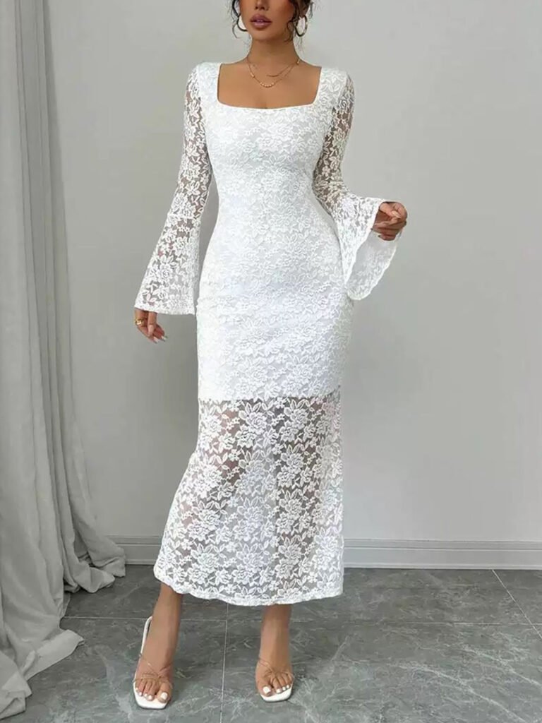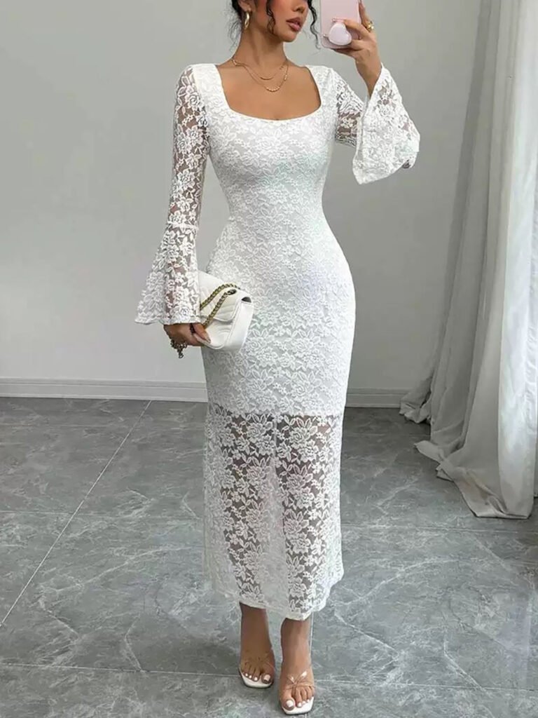 Mesh Flocked Bodycon Mermaid Dress Elegant Versatile Evening Gown
